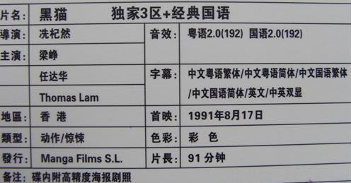 历收VCD 、新U9-270 (与《黑猫2》合辑),画质不佳,德2曾出,遗憾未见9区跟进,对影片的欣赏影响不小。个人评分 :7.8 /10 。