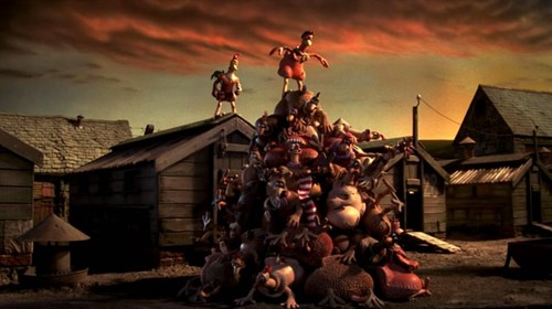 利用鸡舍中的鸡代表着无法突破的框架,一个外来天真的「放山鸡」代表自由奔放的意志,《小鸡快跑》与多数的定格动画一样,在看似简单轻松充满笑料的剧情里交代了严肃的话题,每一个企图改变的灵魂,要如何克服自己与生俱来的「弱点」而成功,是《小鸡快跑》很成功的地方。