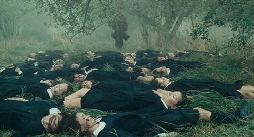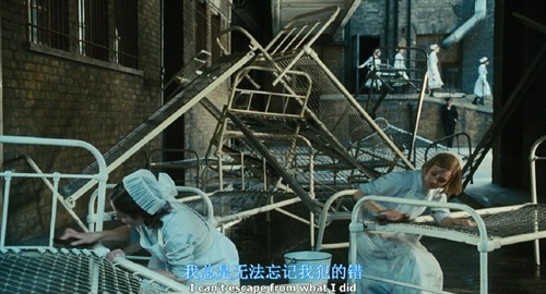 电影后半部分的地点由英国的乡村转到战场和城镇。这一部分画风大变,色调从明媚转为灰暗素淡,正好配合了二战的惨烈和由此带来的哀伤情绪。电影主人公悲剧命运到此时已无可更改,无论是坐在海边思念爱人的塞西莉亚,还是身在战场苦苦盼望回归的罗比都显得那样孤独和苍凉。妹妹布里奥妮已是大姑娘了,但成长带给了她更多的煎熬和痛苦,她无时无刻不生活在对当年错误的悔恨当中。所以尽管她成绩很优秀也仍然放弃了继续念书,却像姐姐一样当了一名护士,在每日面对的生死中不断反省自身和替己赎罪。