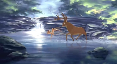 感觉风格象水墨画,很有意境.讲得是斑比的成长经历,因为想念母亲上了猎人的当,差点被猎狗抓住.为了父亲证明自己的勇敢而不断的锻炼,跟随父亲学习本领,最后为了帮助别人战胜可恶的猎狗.