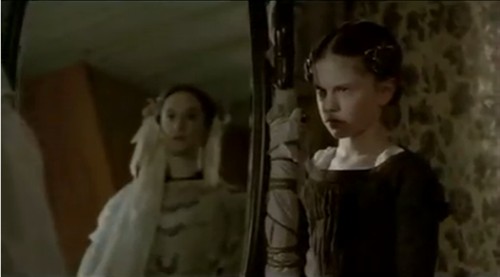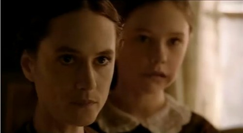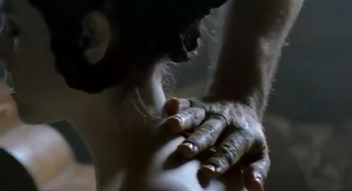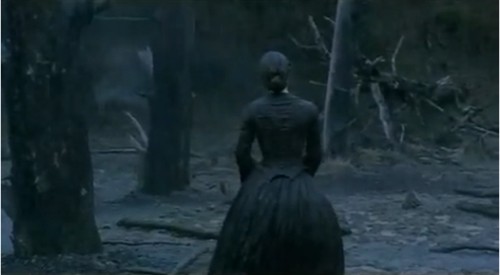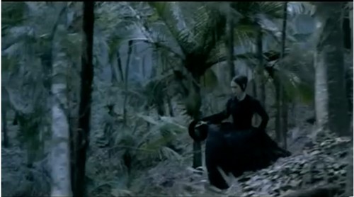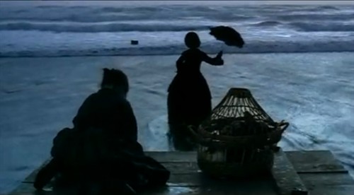当艾达来到陌生的岛屿时,大海大浪滔天,海潮滚滚,整个画面色调是灰色的,显得阴暗 压抑,不仅自然条件的恶劣,也暗示了艾达的不幸的开始。音乐节奏平滑如锦缎,顺着手指就流进手心,让人忍不住捧一口到嘴里。