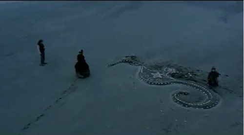 宽阔的天空略显灰暗,汹涌海浪不时冲刷着浅黄的沙滩,一部钢琴孤然而立,母亲心醉的弹奏,女儿快乐的奔舞.贝恩斯数次的回头凝望,我想,就是在那一瞬间,他爱上了她,整部影片中艾达第一次笑容和美丽的音乐,把电影带到了一个高潮。只不过离去时,画面的转而变的阴暗凝重,体现着艾达的离开时的无奈和抑郁。