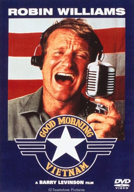 罗宾·威廉姆斯从这部片子后,跃居一线,实至名归。他在里面饰演的是一个越战期间的播音员,每天为士兵们送去早晚的问候。由于播音风格别具一格,幽默又活力,吸引了众多的士兵,成为当时唯一会有粉丝来信的播音员。并且因为自身的爽朗与真诚,身边的朋友也都很喜欢他,甚至还交了很多越南人做朋友。他是真诚的,内心里是平等的,所以可以当越南平民的英语老师,以自己的独特幽默风格赢得大家的喜爱,而不仅仅是为了追到那个越南女孩子。当然,有情节,就会有冲突。太展露锋芒,必然会招人妒忌。不停有同事找茬,想换下他,还好,民意支持他,上司喜欢他,撑住了。真正的意外是那场意外的爆炸。他亲眼所见,并且自己差一点成为那些血肉模糊身体中的一个。可能只是文艺兵,还从未上过战场,见到如此血腥的画面;可能刚刚与死神擦肩而过,内心激涌,难以平静,不能面对刚才还把酒言欢的战友变成焦尸……深深的震撼之后,回到播音室,以一个新闻人的专业素质,想要报道刚才亲历的爆炸,却被阻挡,不让播出。这深深刺激了他的良知,不明白为什么会有这种粉饰太平。在这之前,又有多少的欢愉时光是假象,是虚构出来的天下太平?有多少生命被隐藏起来?一切都是问号。终于还是没忍住,在广播中喊出了事实,喊出了真相,自然也就被停职。一段时间的沉沦之后,下属无意中带他进入对手的圈套,走进了越共的包围圈,差一点就要回不来时,他最好的越南小朋友竟然天降般将他们救了出来。可以想知,那个孩子就是越共,然而他们也真的是最好的朋友。甚至连餐厅的爆炸也是利用了他才得以实施……