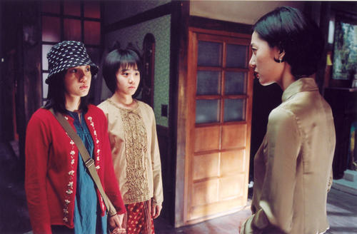 开始的情节平淡无奇,姐妹对后妈有敌意,后妈趁姐姐不备欺负折磨妹妹,可是一系列的奇怪氛围困扰着三人,我就私下以为和普通鬼片一样,是死去成为冤鬼的母亲在报复,可母亲为什么要报复自己的女儿呀?我有些想不通。直到父亲对声嘶力竭的姐姐说:你的妹妹早就死了,你快醒醒吧,别再犯病了。我才意识到,前面一大段都被导演算计了,在前面大段里,手足情深的妹妹和妖艳可恶的后妈都是不存在的,是蔷花人格分裂出来的。这之后一身职业装的后妈才出现。影片开始逐步还原真相:花心的父亲找了后妈让姐妹的母亲绝望上吊自杀,妹妹红莲看到后惊恐万分被橱柜压倒,而姐姐与后妈针锋相对没有听到妹妹的呼救,最终导致妹妹死亡。蔷花万分自责才在独自回到老宅时幻想自己分裂成三人,而她之所以还分裂成美艳的后妈是有一种替代母亲的幻想,可能是一种恋父情节吧。
