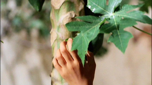 第一家少爷醉心音乐,常把朋友带到家中,甚至在卧榻上切磋音乐。 小梅是个敏感而内向的孩子,对家中的一些细微之处充满了好奇,青木瓜被摘下后,一股清香的味道吸引了她。此时,片头出现的音乐Estampe 再次出现。 小梅了解到这是木瓜的味道,露出发自内心的微笑 女主人对小梅说:你长得很像我死去的女儿,这让小梅有些忐忑,这时,略带伤感的音乐Interlude B响起,衬托她此时的心情。 蚂蚁觅食这样的常见景象在微距镜头下也美仑美奂,显得摄影师功力非凡,此时有些若隐若现的钢琴声。 调皮的小男孩和劳动中的小梅捣蛋,小梅也不以为意,这时的配乐是打击乐为主的Interlude A1,急促的鼓点声和弹拨乐器形成了对位,如同《大闹天宫》里的悟空出场。 看着酷肖自己逝去的女儿,既勤劳又乖巧的小梅,女主人露出了发自内心的怜爱之情,此时的音乐是Estampe的另一段。 透过少主人大儿子的眼光,小梅第一次采摘了木瓜,此时一段急促错乱的弦乐响起,突显当时的紧张气氛。 小梅打开青木瓜,里面是晶莹润白的瓜子,这时佛家的木鱼和铃声作为伴奏出现。 针灸的画面,伴随一民间乐队在演奏,甚是有趣。 成年后的小梅来到阿全家,继续自己的仆人生涯,这个画面第二家少主人阿全演奏的是德彪西的钢琴曲《月光》,德彪西的这首曲宁静中充满着澎湃的激情,也非常适合这部影片的情绪。87分,这首曲再度出现。 穿上越南旗袍——奥戴的小梅发现了阿全为自己画的素描,心生感应,此时Estampe中的一段横笛又出现了,其实我不是很喜欢陈刘燕荷(陈英雄另两部影片《三轮车夫》《偷妻》主演)在本片中的表演,和浑然天成的少女小梅相比,她显得有些装纯情。 除了德彪西,还有肖邦 音乐,是《青木瓜之味》的另一主角,她和画面一起构成了本片的成功之处,也许我们不认同影片的情节(这个故事我觉得不如另一部越南影片《恋恋三季》好),甚至会淡忘这个故事,但我们会永远记住这唯美画面和动听音乐给我们带来的美妙感觉,像炎热夏日在山间淙淙流淌的泉水,让人心绪宁静。 很遗憾,这片原声碟的在线音乐虾米没有,其他也没找到,因此没做链接。如果有朋友知道,麻烦告诉我,谢谢!