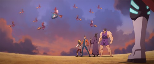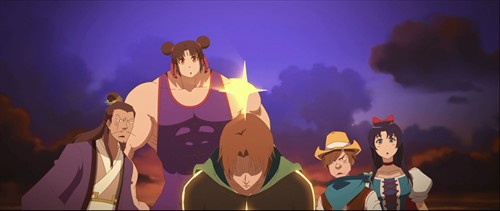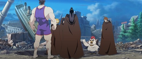 14、最后合体的魔王,使用的是《大闹天宫》(电影版)中牛魔王和孙悟空变身合体的创意,和电影基本一致。台词中:“组成脚和腿,组成躯干和手臂, 我来组成头部!”致敬了经典动画片《战神金刚》