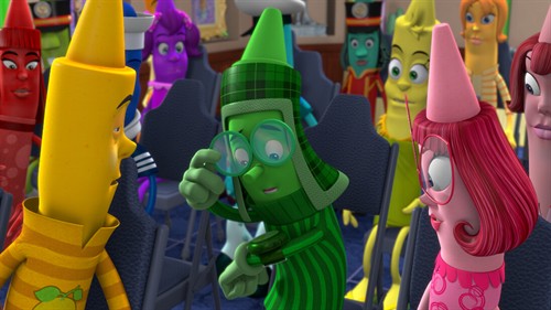 可以说,影片构建出了两种截然不同的世界,一边是小男孩的现实世界,一边是蜡笔的七彩城世界,两者相互交互渗透中,也无疑形成了强烈的对比。对于蜡笔来讲,白天它们只是规矩的画画工具,而到了晚上,才是它们拥有自我人格的时刻。在这里,创作者显然将各种生命的色彩注入到了它们身上,不再是为他人涂上颜色,而是它们真正将自己的命运主宰,从而画出不一样的色彩。